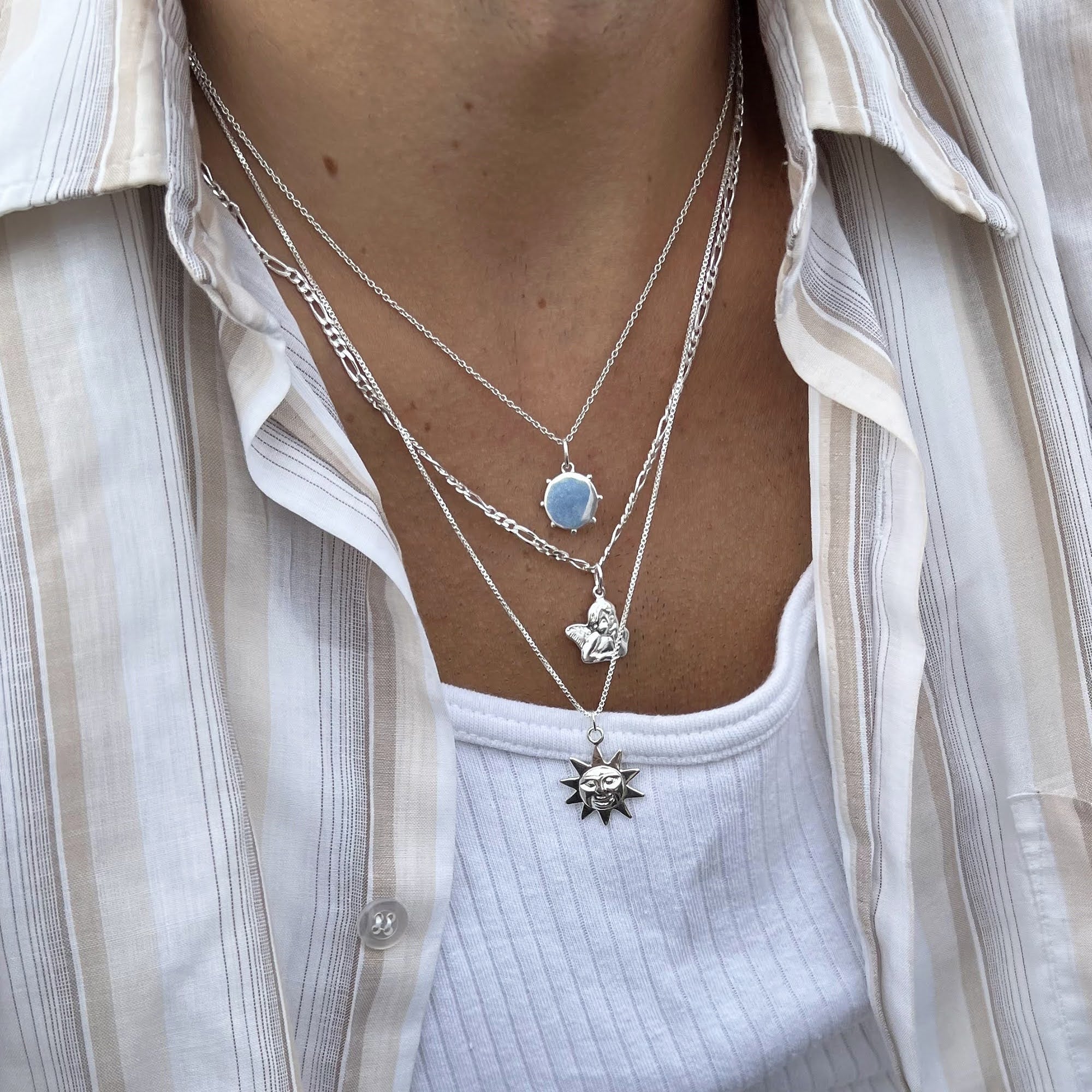 All our jewellery is made from either Sterling Silver, 18ct Gold Vermeil, 9ct Solid Gold or 14ct Solid Gold. As these are precious metals they won’t ‘rust’ like costume jewellery, they aren’t going to leave a weird green mark and they have serious longevity – especially with our care tips.