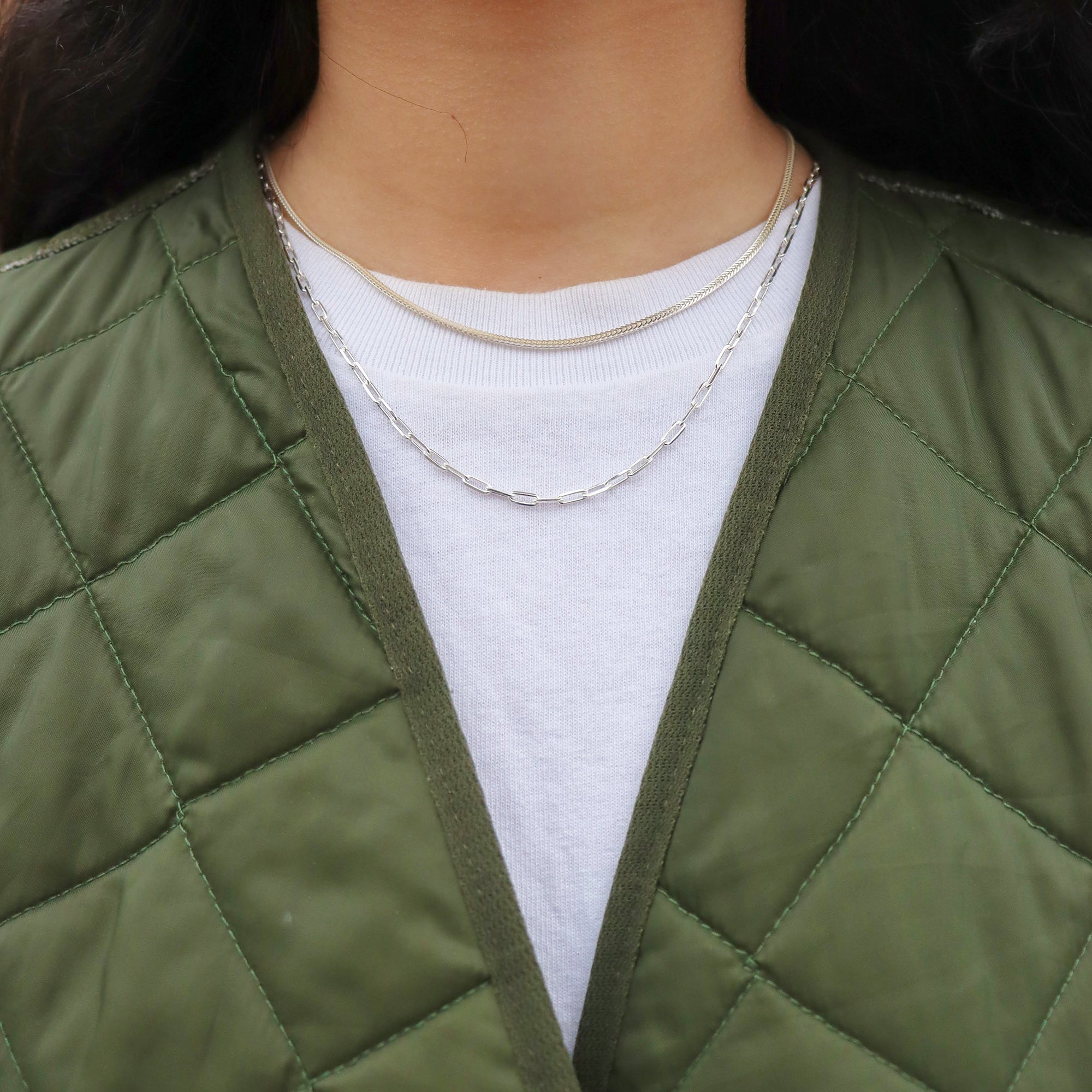 The Flat Snake Chain measures: 16"+ 2" (18" total)