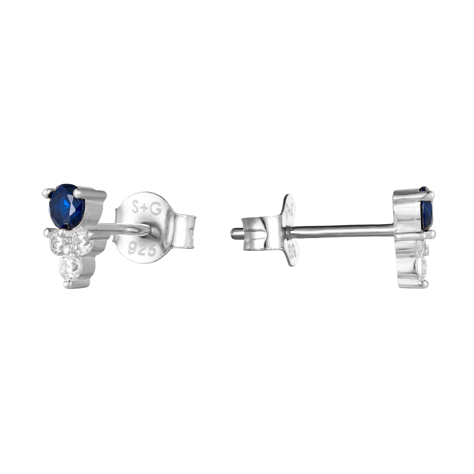 Sterling Silver Sapphire CZ Cluster Stud Earrings