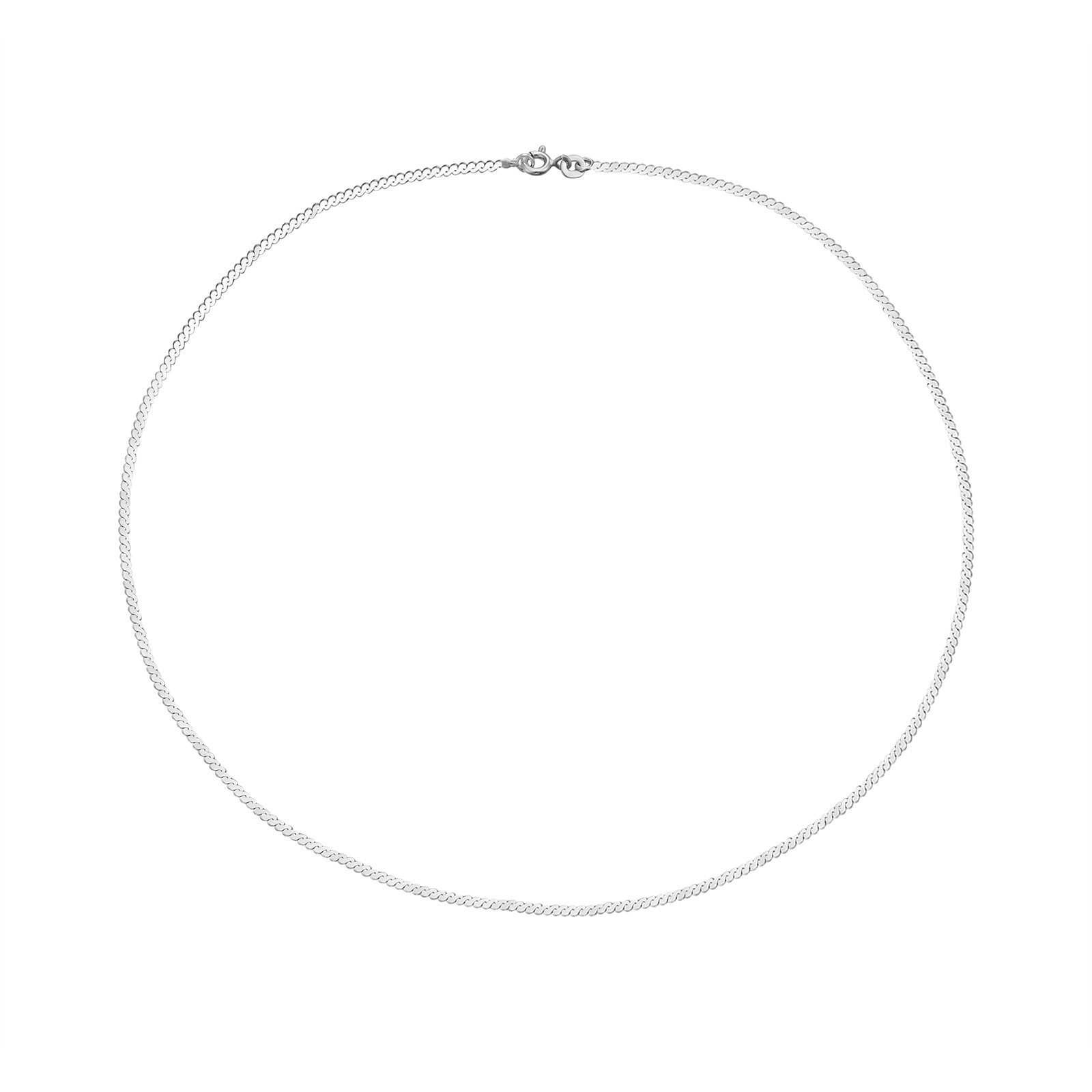 The serpentine chain is composed of hammered s-shaped links that overlap laterally. The links are laid next to each other with another identical set of links laid in parallel below the first and connected together.