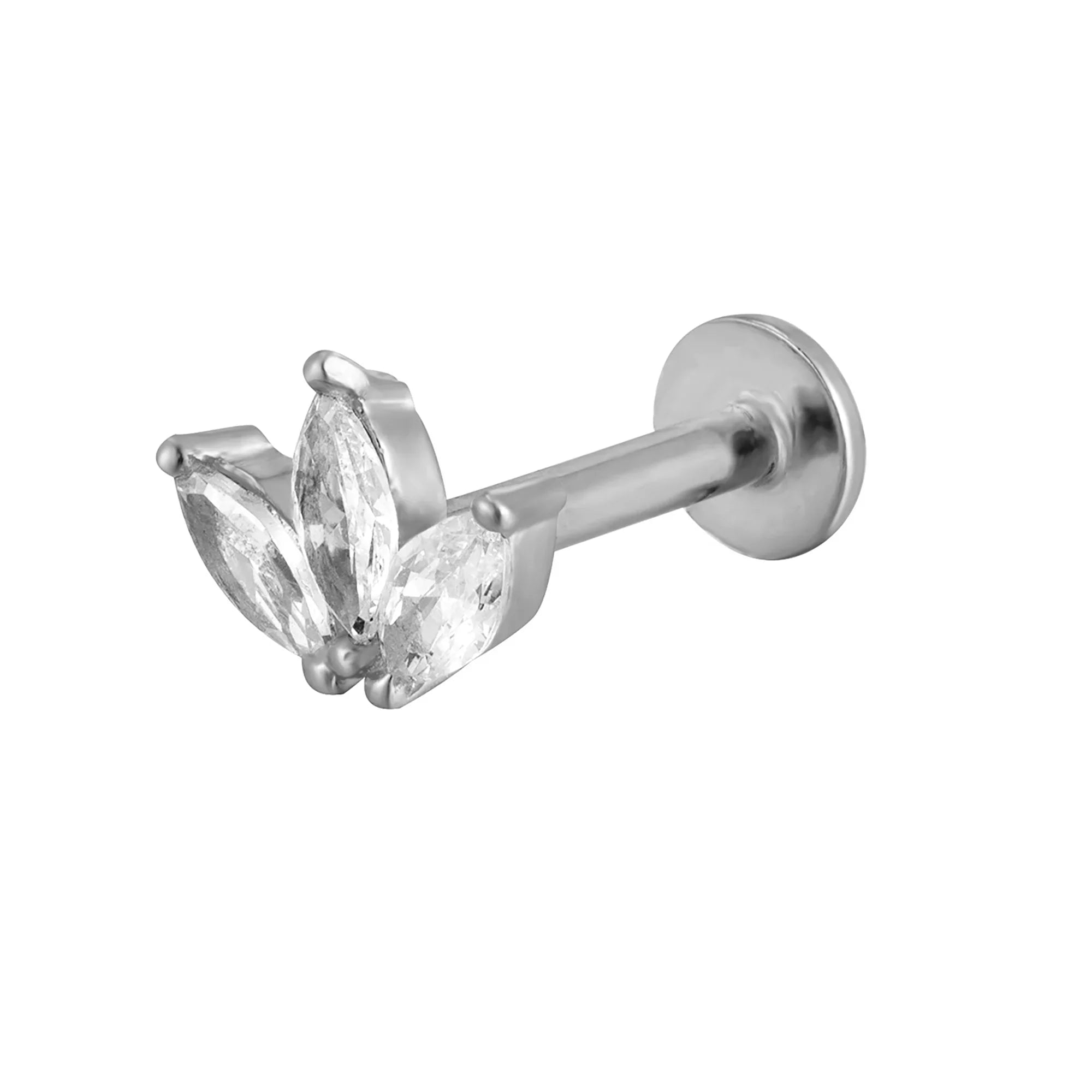 Sterling Silver Tiny CZ Lotus Labret Stud Earring