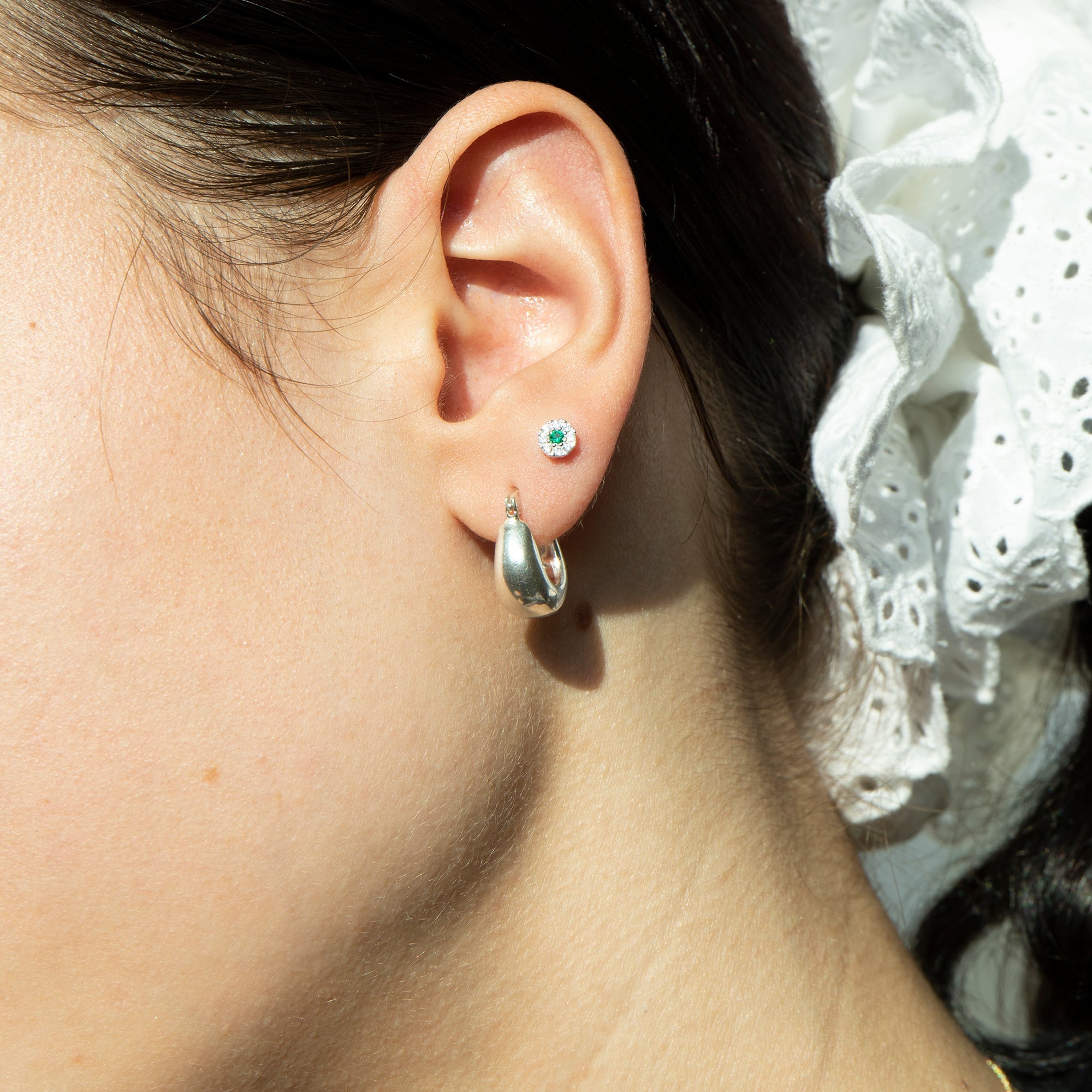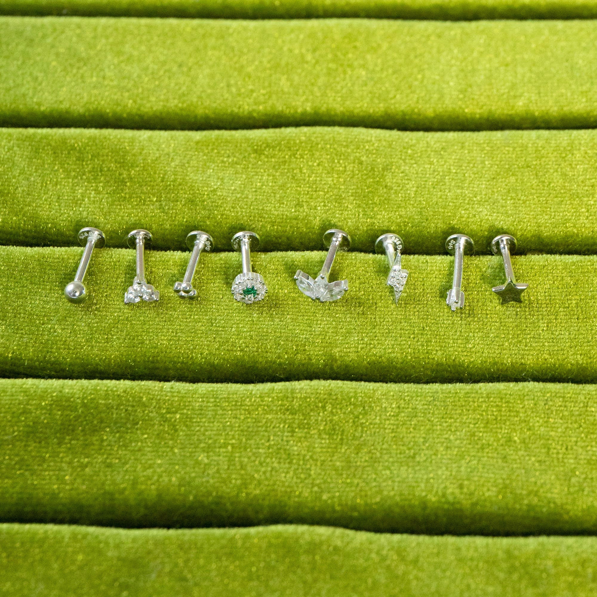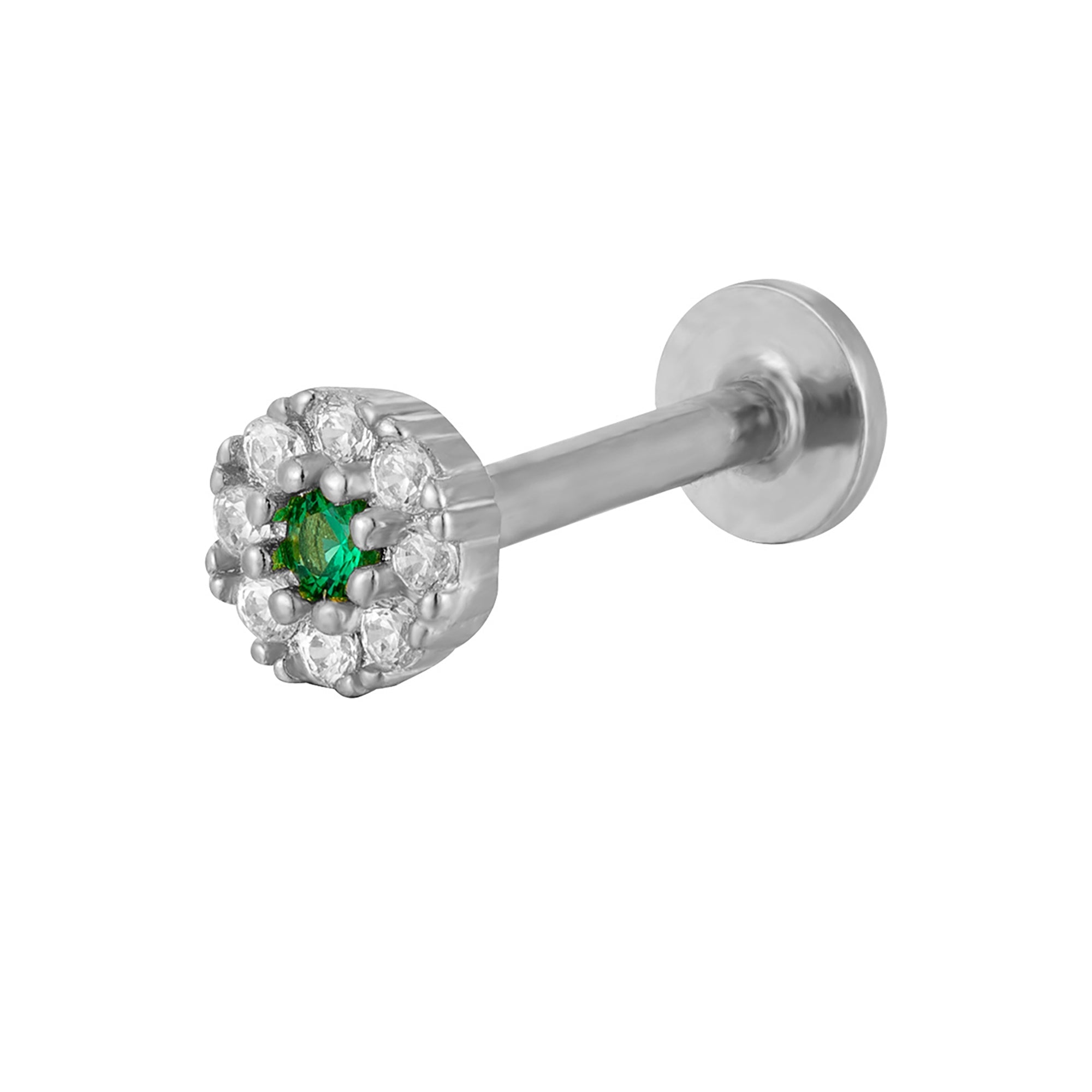 Sterling Silver Tiny Emerald CZ Labret Stud Earring