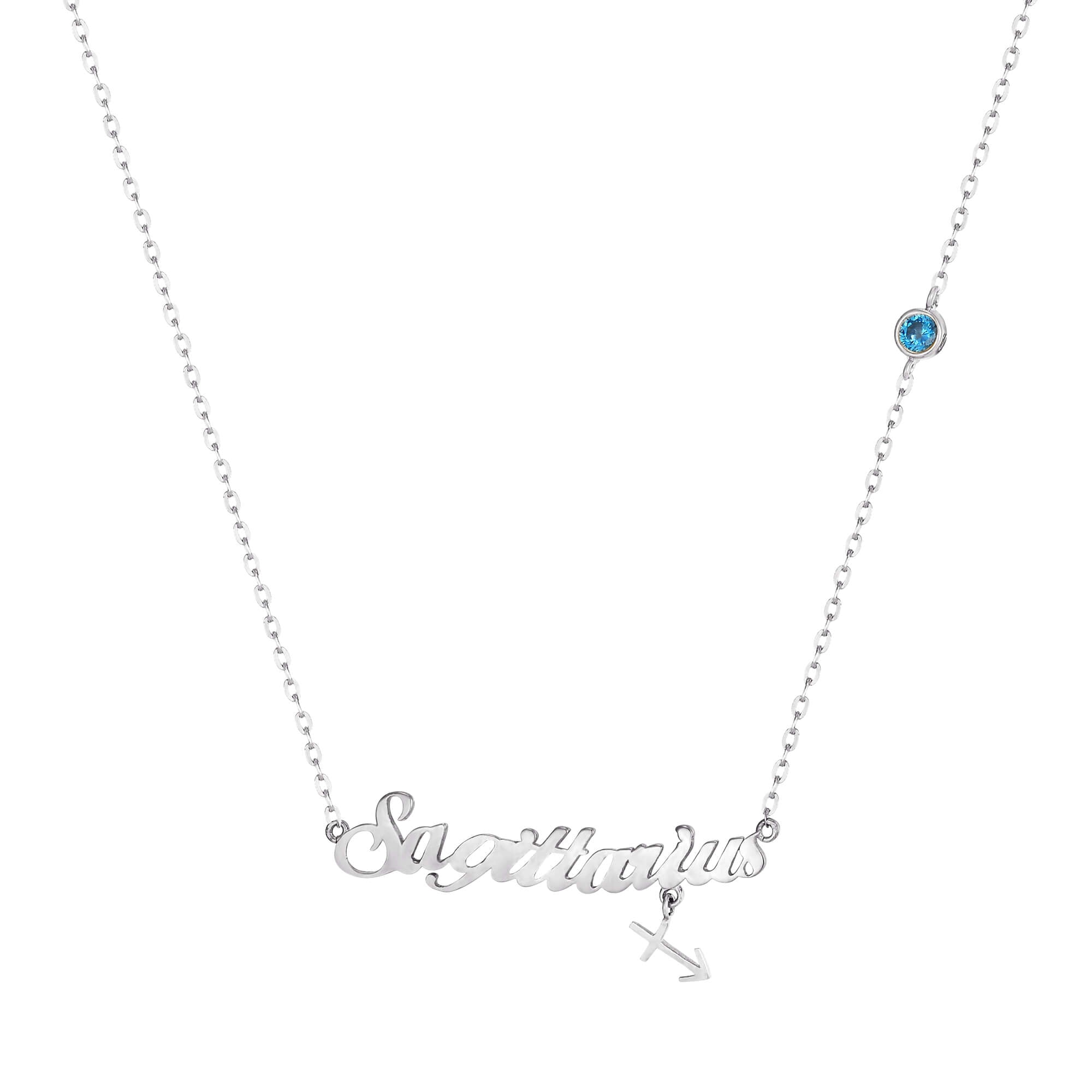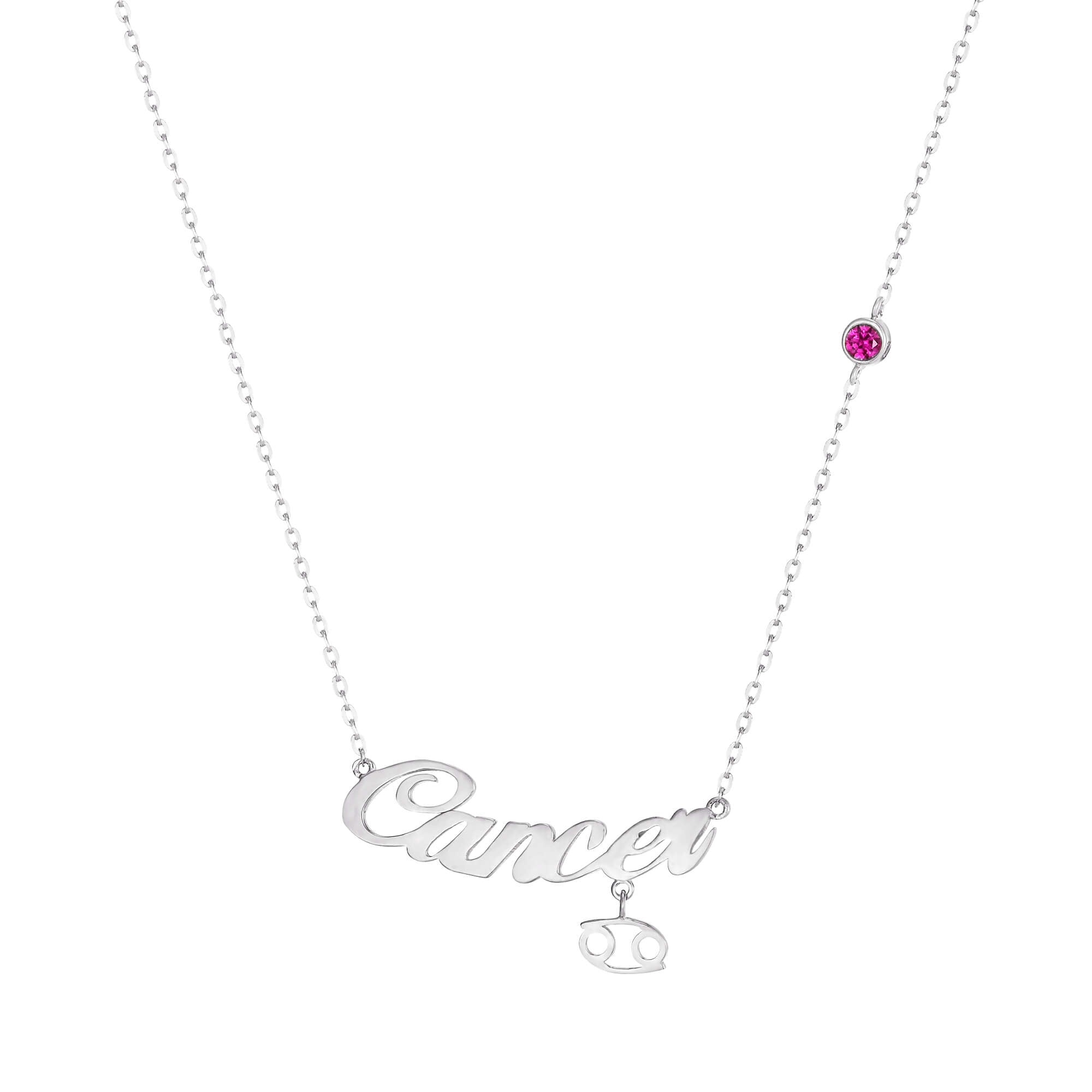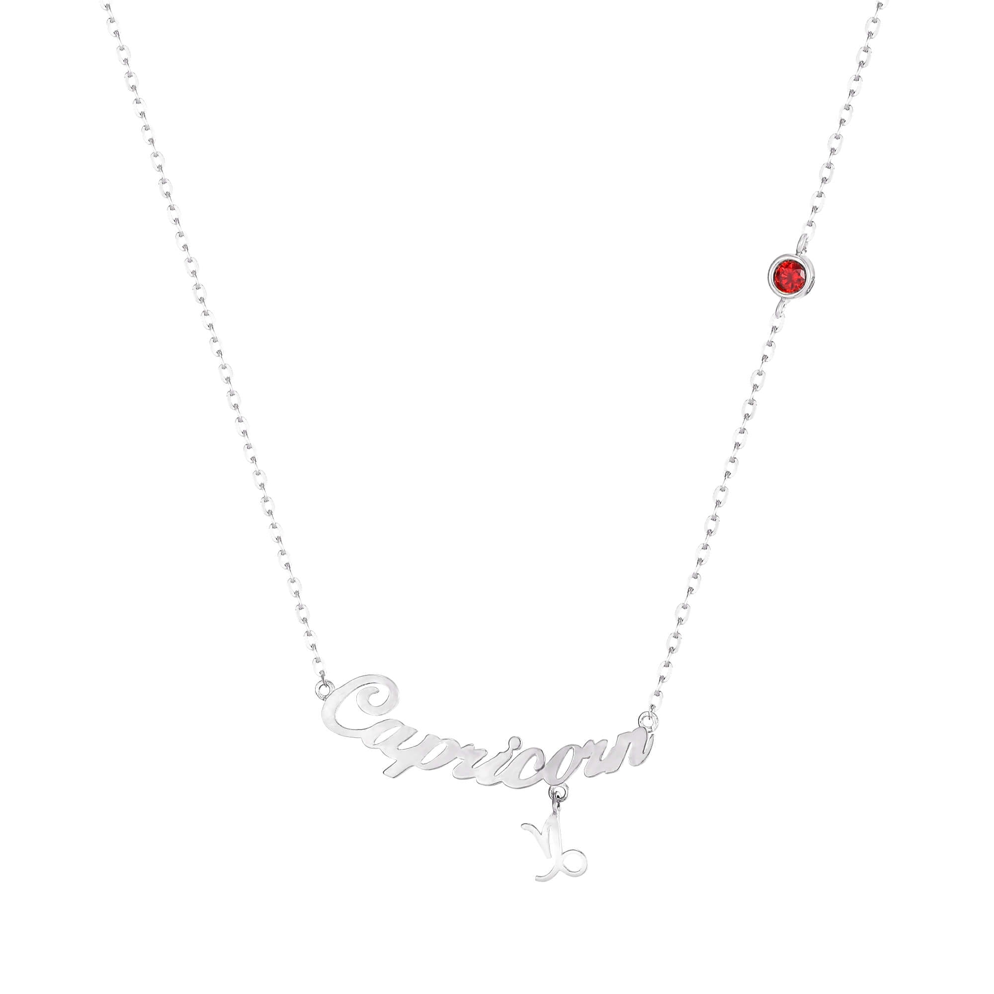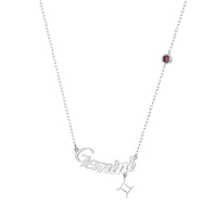 Birthstone Star Sign Necklace, with star sign charm and bezel cubic zirconia birthstone.