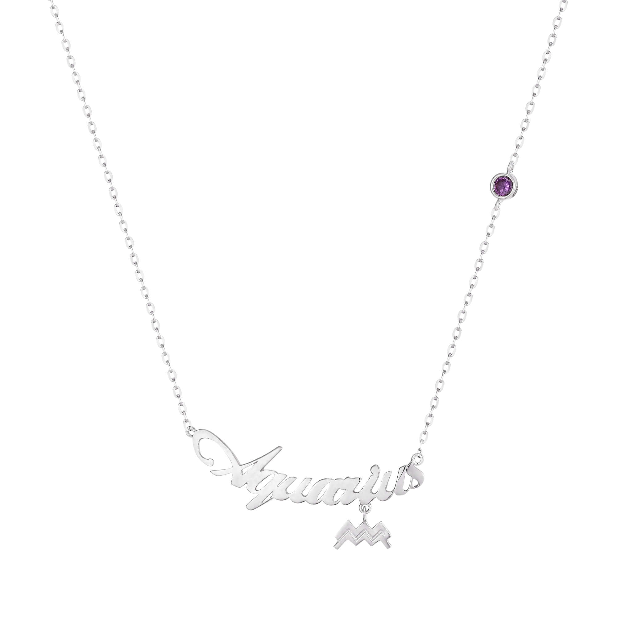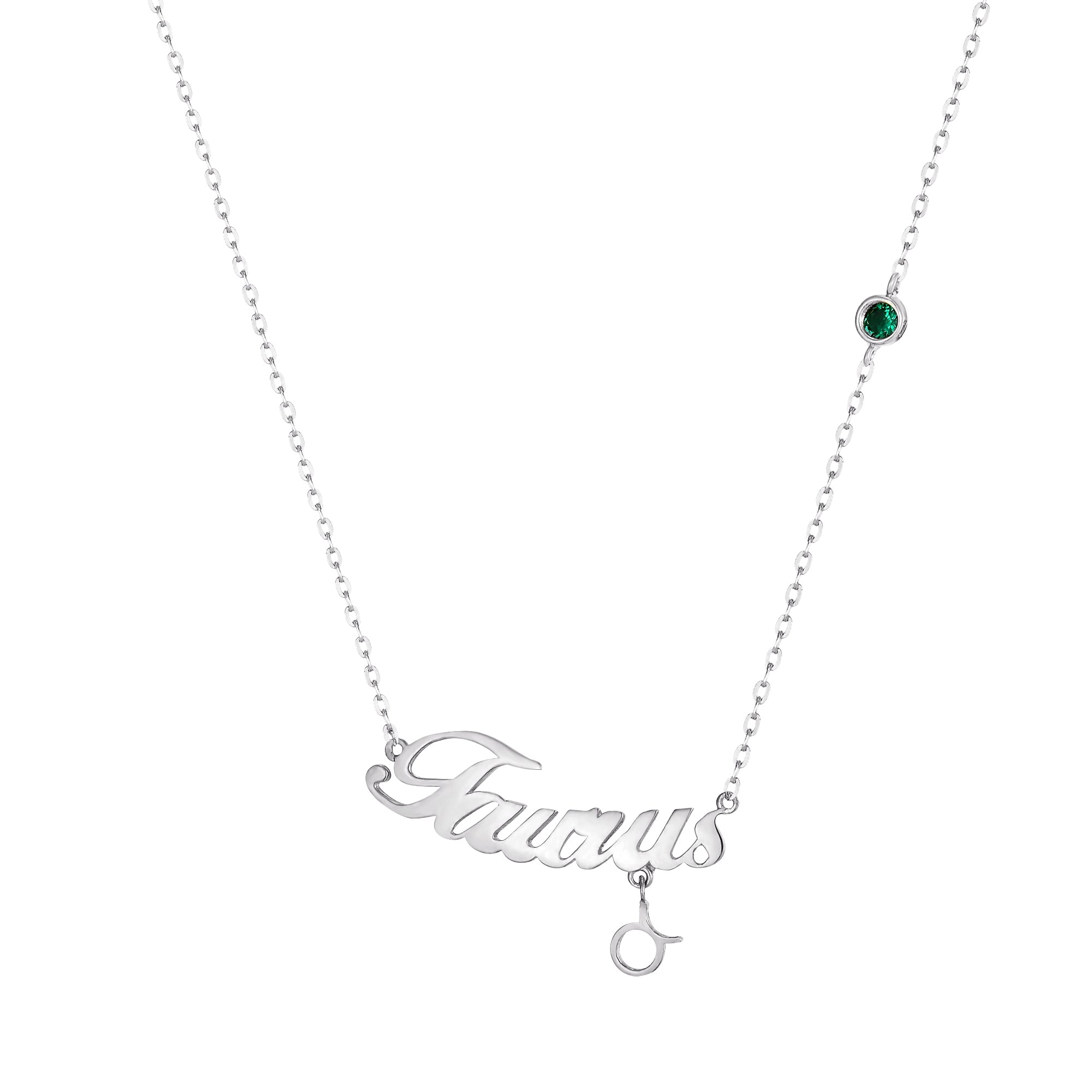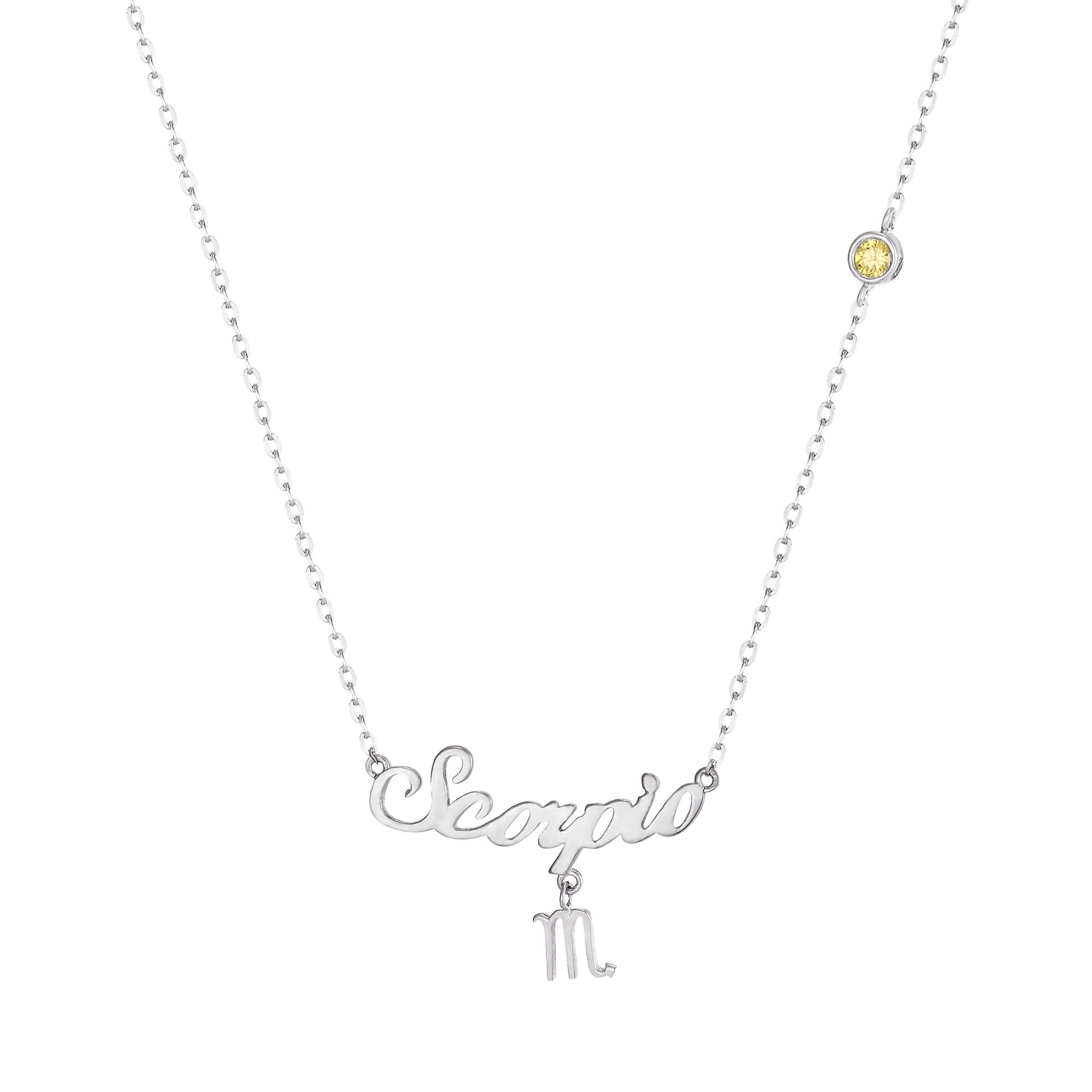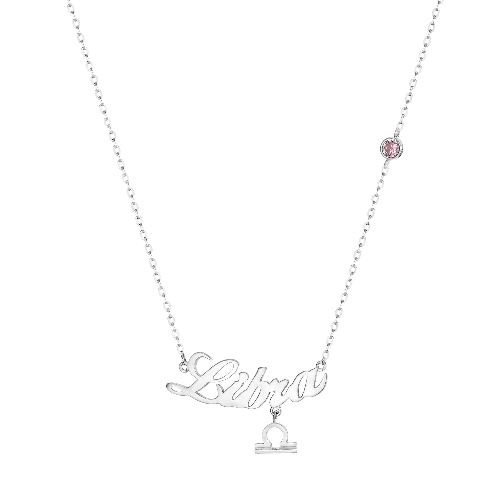 Birthstone Star Sign Necklace, with star sign charm and bezel cubic zirconia birthstone.
