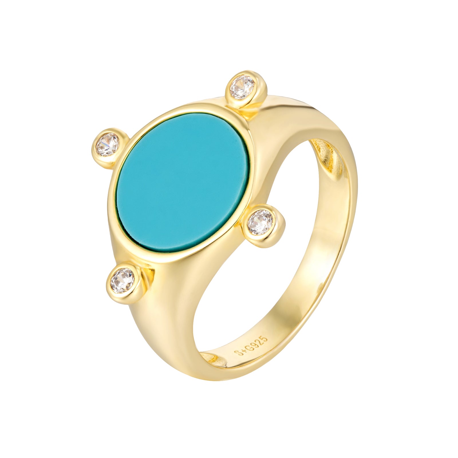 18ct Gold Vermeil Turquoise CZ Beaded Ring